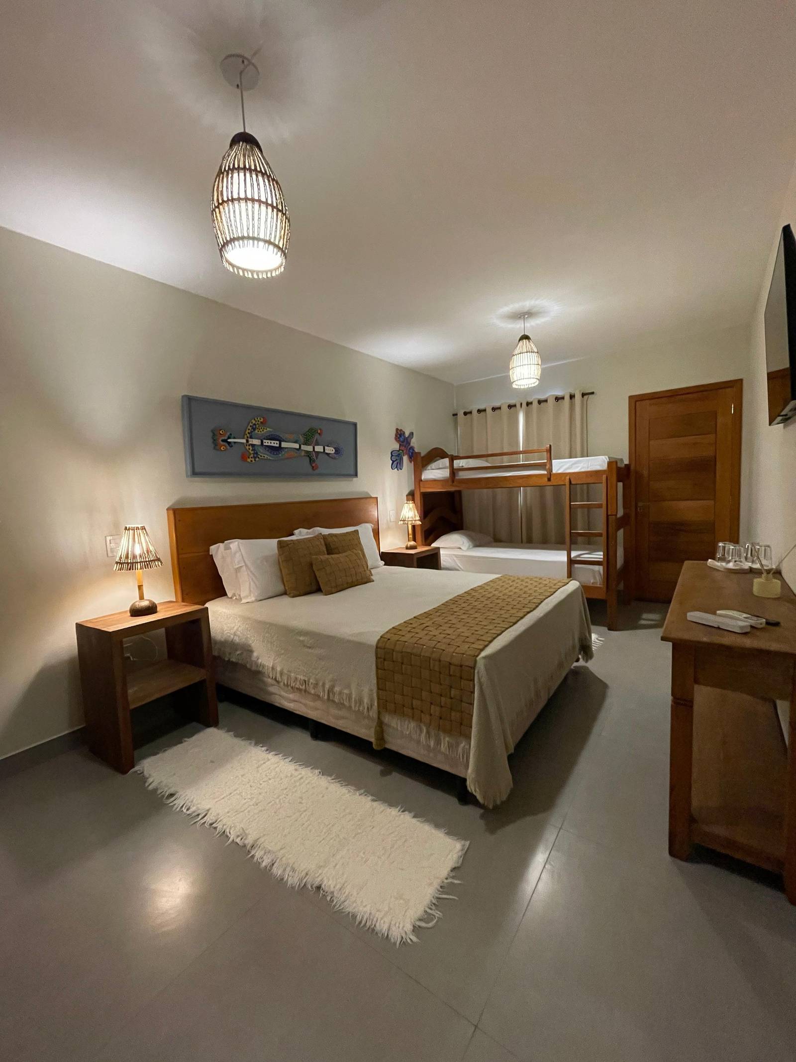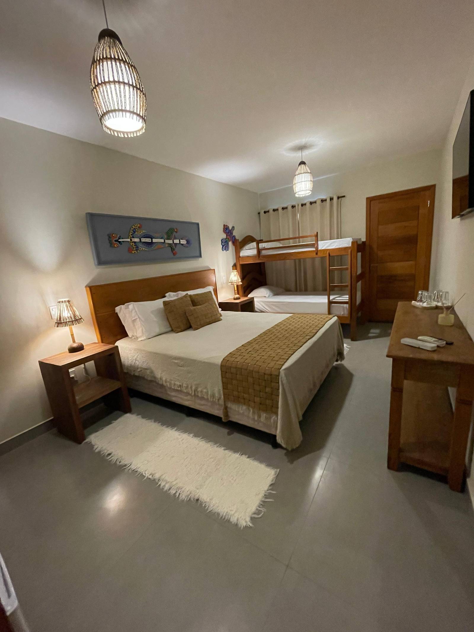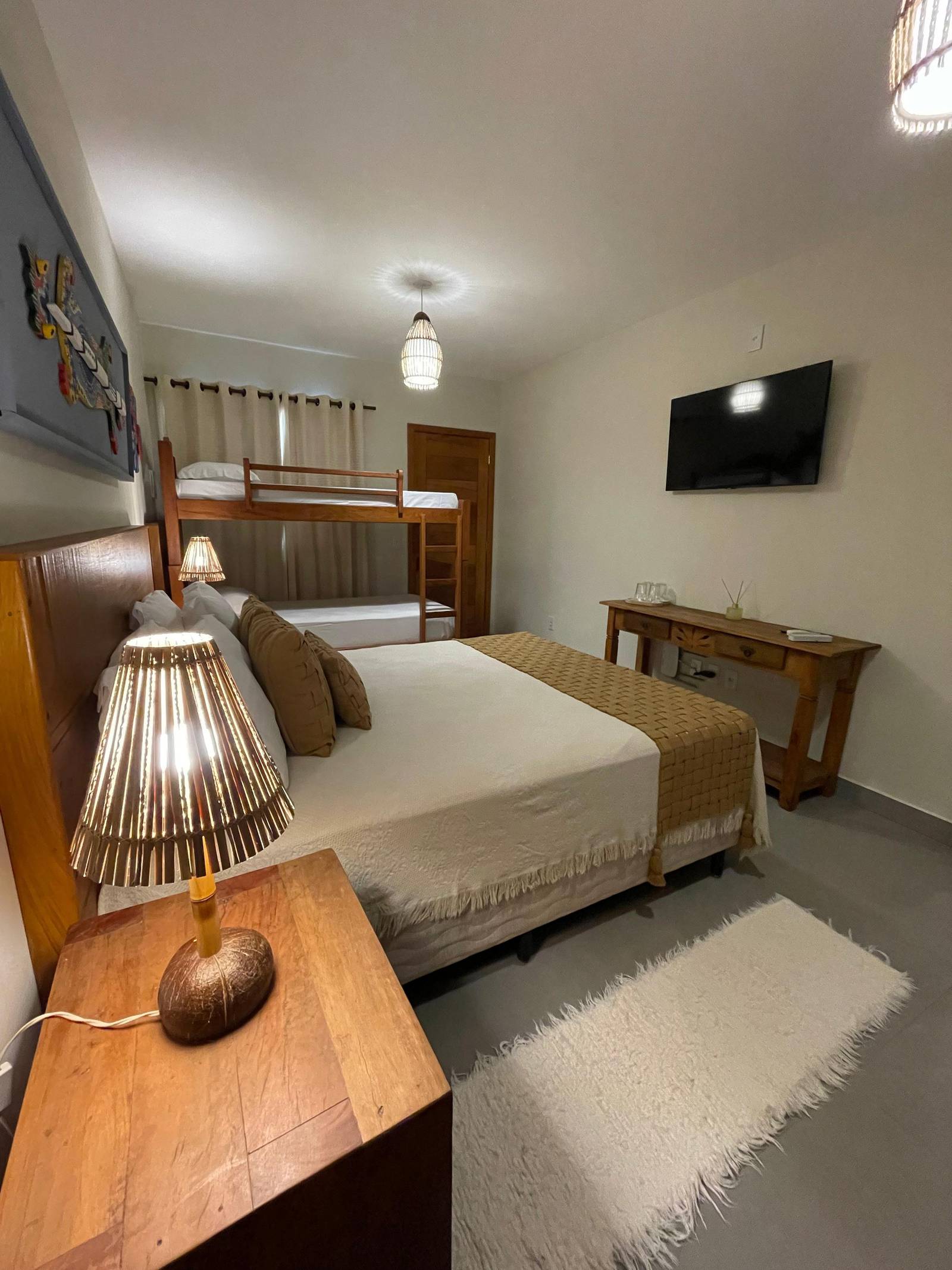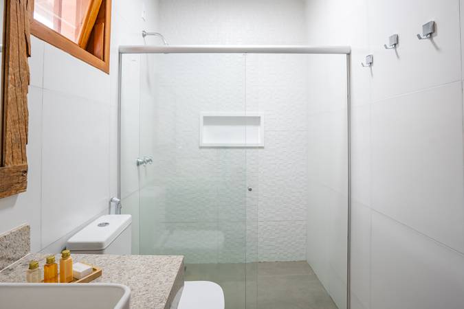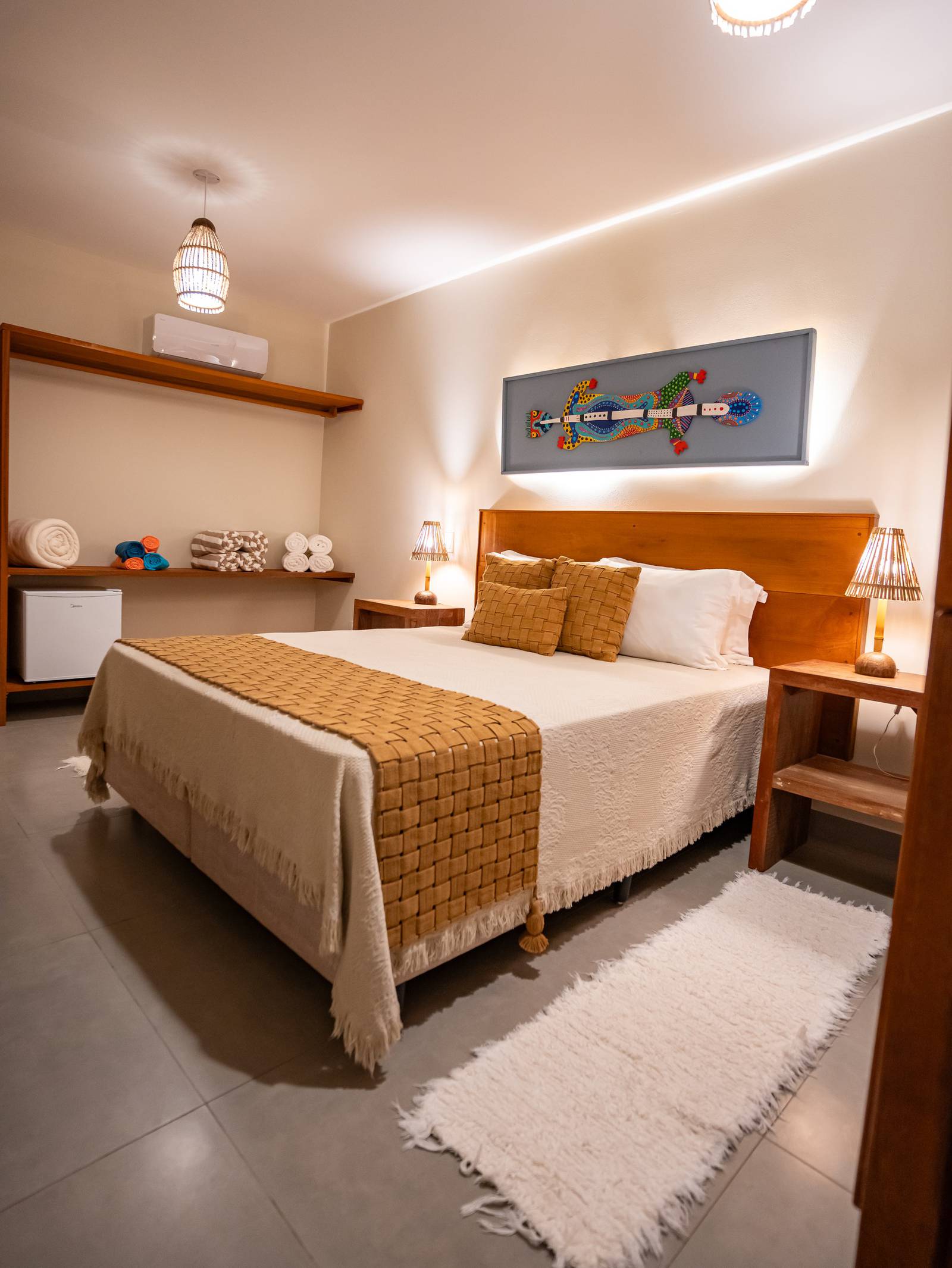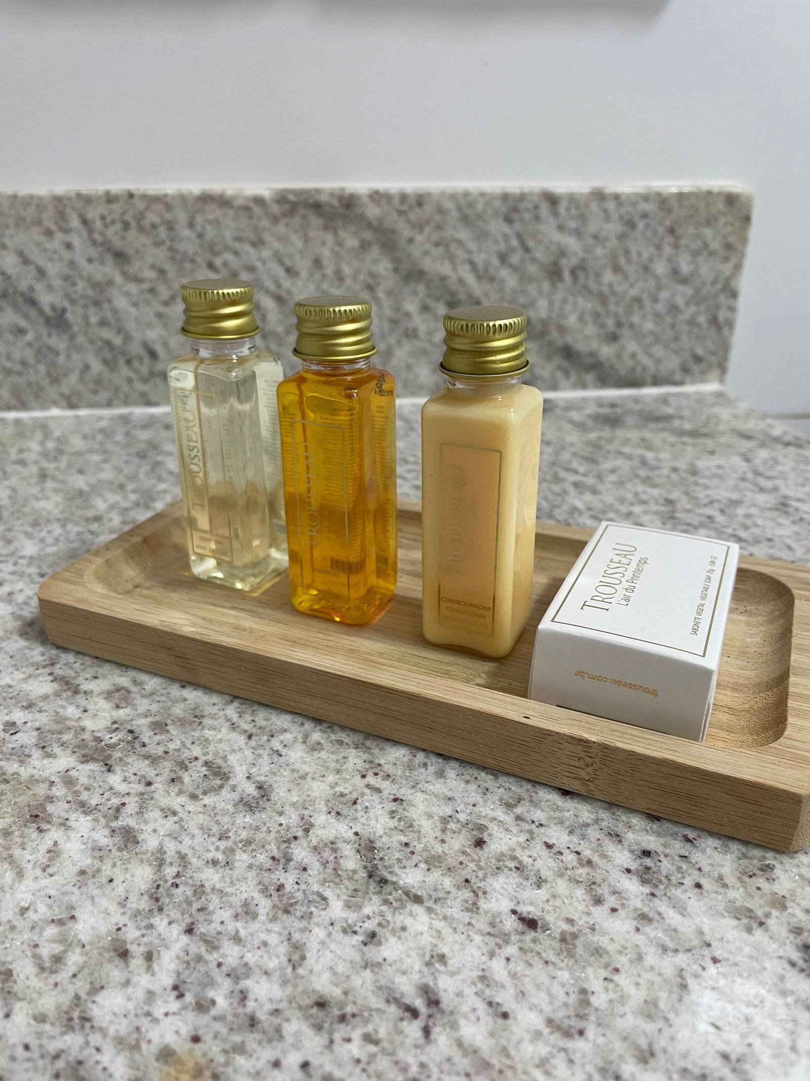 Suíte ampla e sofisticada, situada no andar térreo com varanda para o jardim, decoração pensada em cada detalhe para proporcionar conforto e exclusividade. Acomoda um casal em cama Queen com possibilidade de uma terceira e quarta pessoa em cama de solteiro beliche. Banheiro amplo com secador de cabelo, toalha própria para remoção de maquiagem e amenities Trousseau.