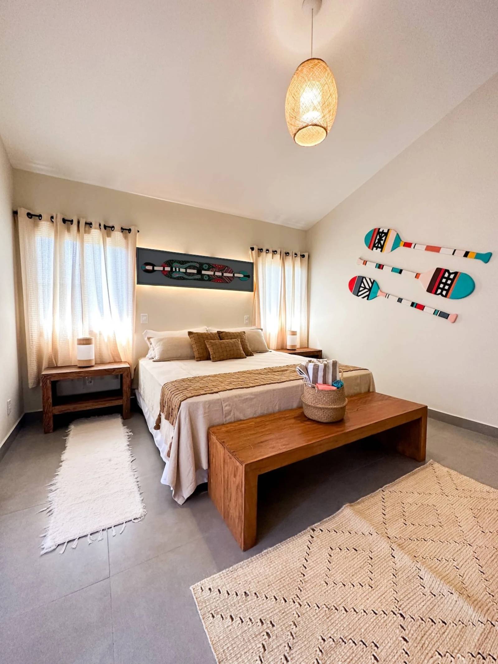 Suíte luxuosa e moderna, situada no andar superior com uma exclusiva varanda e vista para a frente da pousada. Ideal para acomodar um casal em sua confortável cama king size. Decoração requintada, aconchegante e acolhedora. Banheiro amplo com secador de cabelo, toalha própria para remoção de maquiagem e amenities Trousseau. Conta com enxoval Buddemeyer para proporcionar conforto e bem-estar.